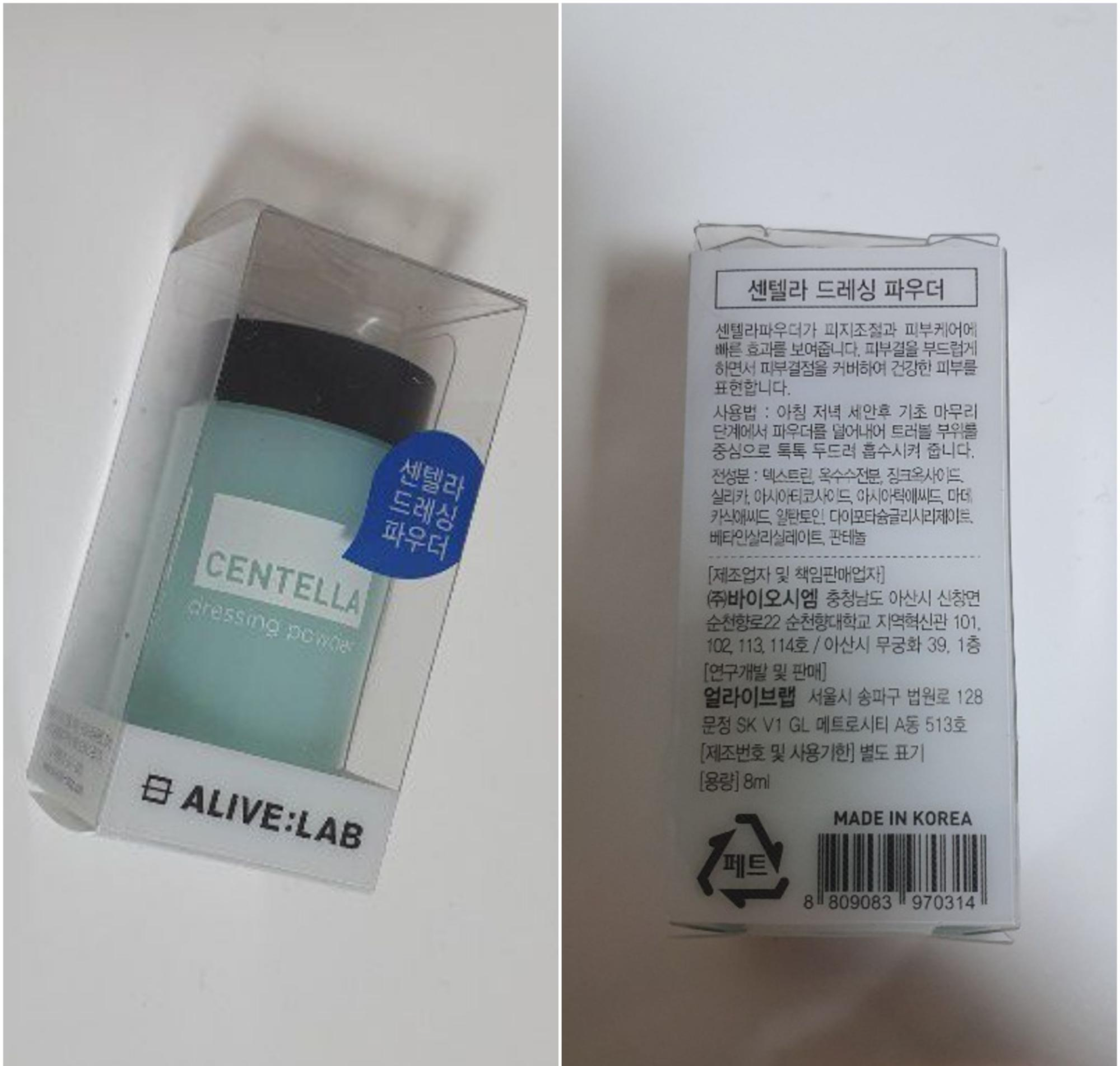 그 첫 번째는 바로 얼라이브 랩 센텔라 드레싱 파우더입니다.